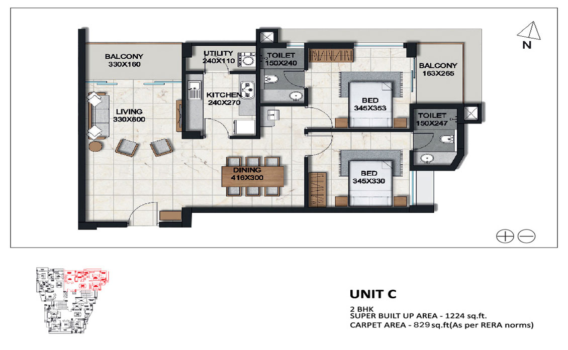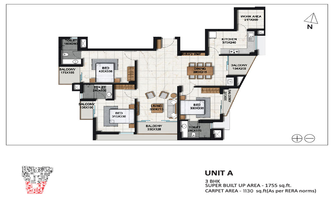 Main areas of apartment - Plan Coloured premium quality (Asian/RAK/Johnson/Kajaria or equivalent) vitrified tiles