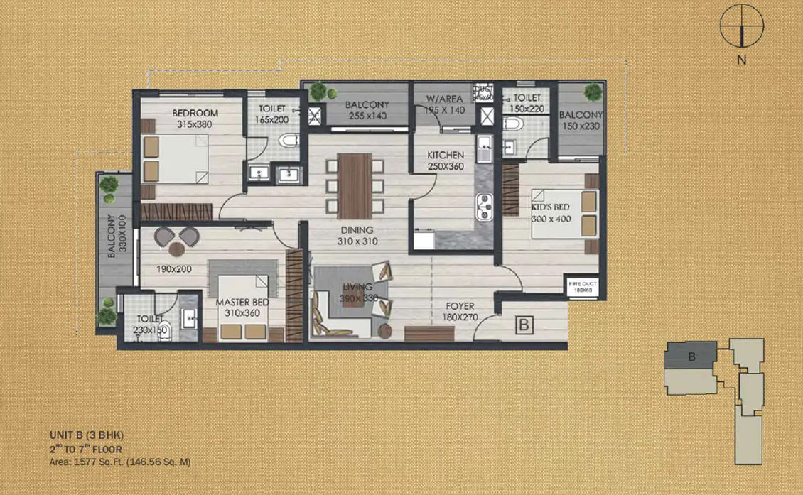 The theme is carried further into the design of the apartments themselves, with smaller but significant architectural elements like French windows, landscaped gardens, and greenery growing on the outside walls. A rooftop track provides for a community space, while the French windows allow the resident to take in the clean fresh, green surroundings immediate to the vicinity of the project.
