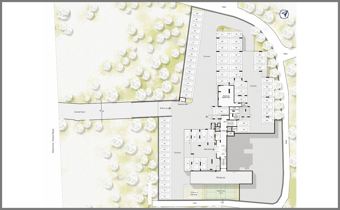 * Concealed copper wiring and adequate light fan and plug points, good quality modular switches, three-phase connection with independent KSEB meters.