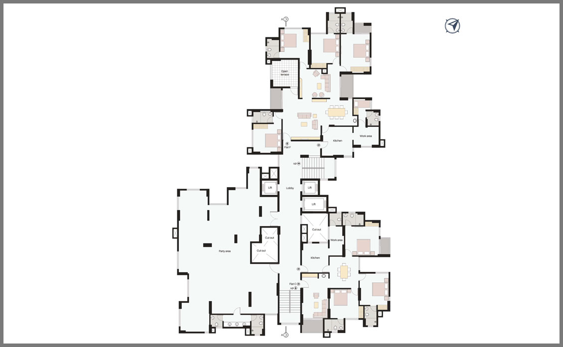 * Engineered wooden flooring for master bed & vitrified tiles for the balance area of the apartment and rustic tiles for kitchen and balcony area.